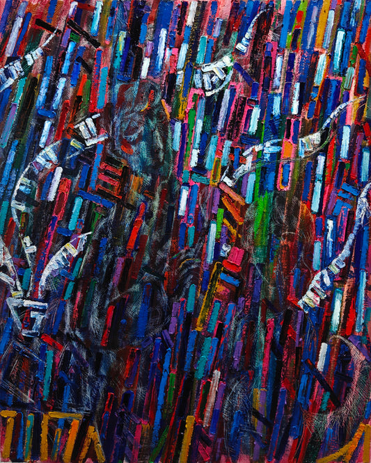 在这件作品中,我运用可识别却又抽象的标记,暗示了一种非语言性语言——缺乏文学意义,却富有情感共鸣。这种普遍性鼓励每位观者在抽象中探索自身的意义。