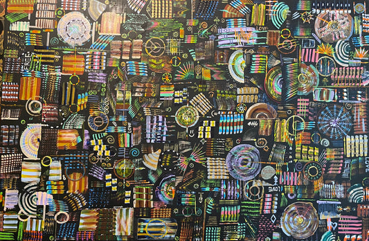 藝術透過多種色彩和圖案象徵社區內豐富的多樣性,每種色彩和圖案都代表著不同的身份和故事,匯聚在一起形成一個和諧的整體。活潑大膽的色彩讚揚真我,鼓勵觀眾擁抱自己的獨特性。複雜的圖案和互動突顯了個人之間的相互關聯,強調支持、團結和一致。儘管背景是深色的,但明亮的形狀代表了社區的韌性和力量,象徵著希望和即使在困難時期也能發光發熱的能力。