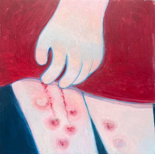 這是一場對運動、節奏和集體認同的強有力的視覺盛宴。這幅作品以極富表現力的筆觸,捕捉了黎凡特標誌性舞蹈——達布克舞——它不僅是一種表演,更是一個鮮活的、團結與韌性的象徵。舞者們舞動著,他們的腳步與傳統的節拍相呼應,他們的姿態根植於自豪與連結。 背景是一片醒目的紅色,這不僅是為了對比,也是一種活力四射的情感表達。紅色象徵激情、力量和人們的心跳,喚起人們對當下熱情的慶祝。這幅畫作融合了動感與抽象,其目的並非定格某個瞬間,而是表達脈搏本身——達布克的心跳,跨越世代的腳步迴響,以及傳承於傳統的情感景觀。它是文化鮮活的記憶,化為色彩和動感。