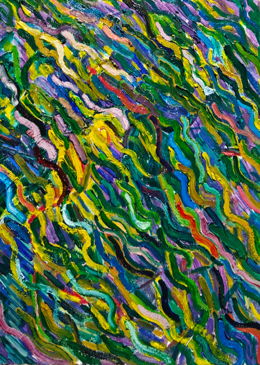 Through abstract brushstrokes and color, the painting conveys an inner state of nature and the...